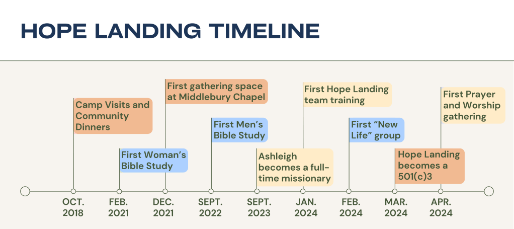 Throughout the next five years (18-22), from friendships formed at tent city and other tent encampments in Akron, Ashleigh heard many more stories like Luke’s filled with isolation, shame, and hopelessness. In these 5 years, He was steadily forming and developing the vision for Hope Landing, a ministry that exists to see homeless men and women experience true hope and lasting healing through relationship with Jesus Christ and His Family.